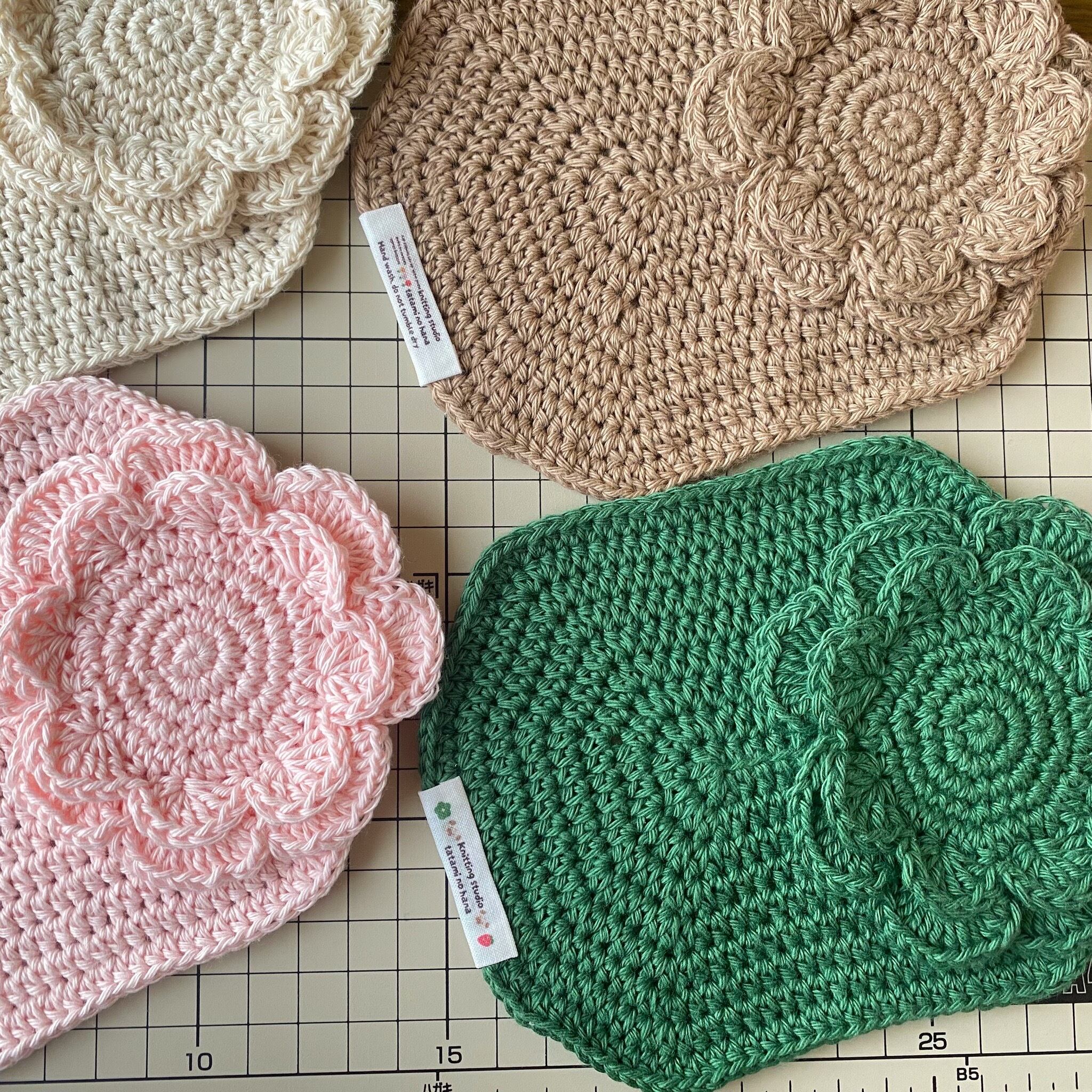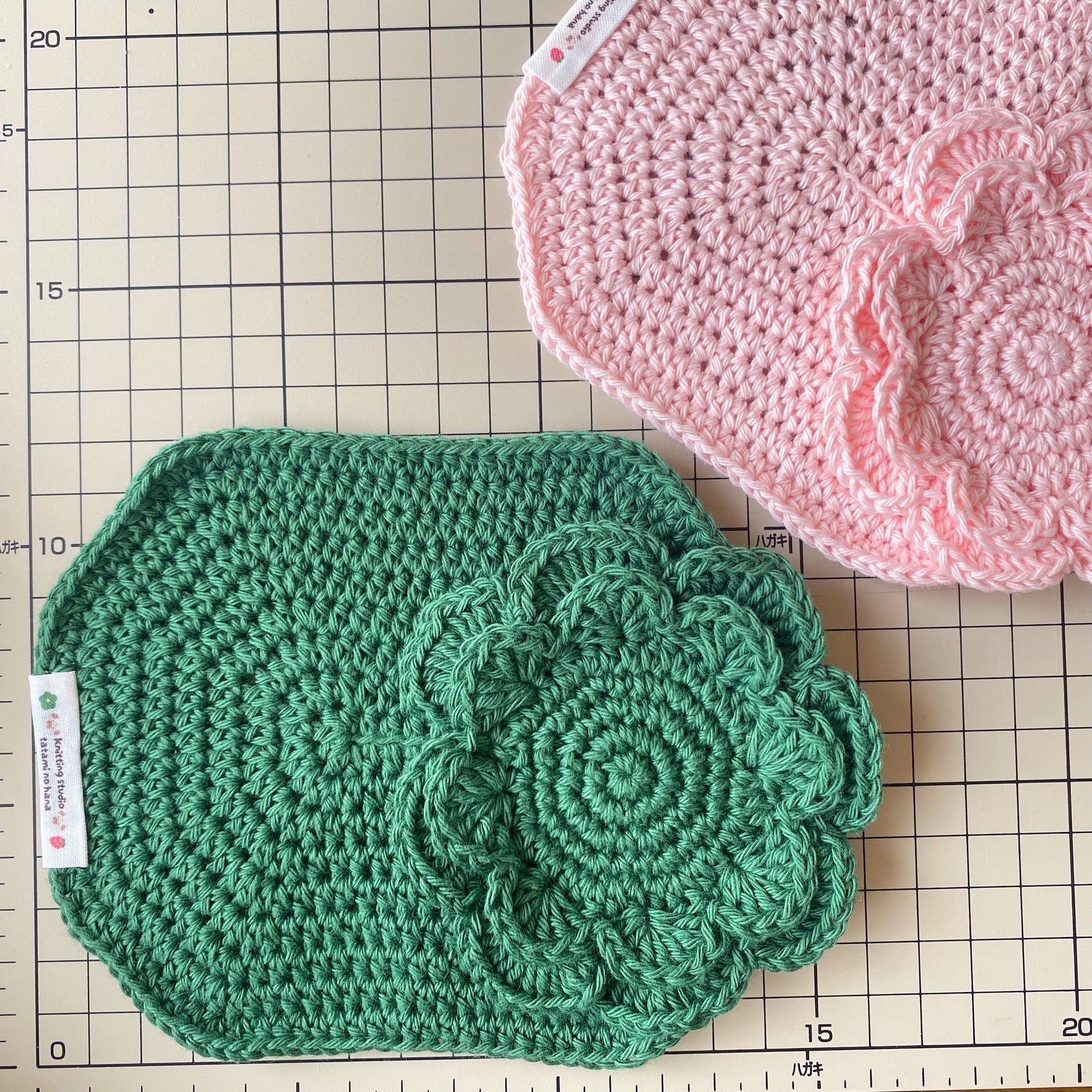 ティーカップを置くことを想定して作られたコースターは、2枚の生地を重ねた安定感のある作りです。